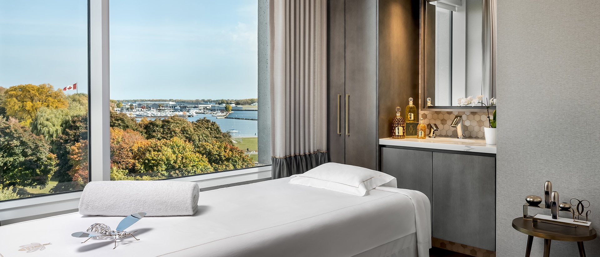 O Spa Guerlain é um oásis urbano na orla do Lago Ontário, a cinco minutos do centro de Toronto, Canadá. Um lugar perfeito para viver o extraordinário. O Spa Guerlain convida para uma viagem sensorial dedicada à beleza e ao bem-estar, onde os sentidos são despertados e a mente é acalmada.