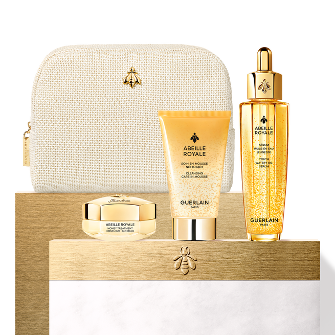 Kits que reúnem os produtos essenciais de cuidados de pele Abeille Royale, para uma inovadora e avançada solução antienvelhecimento.