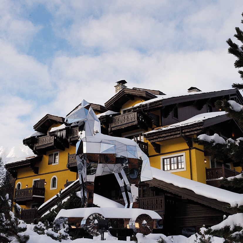 and out of warmth. An ice fountain cures ski-fatigued muscles.