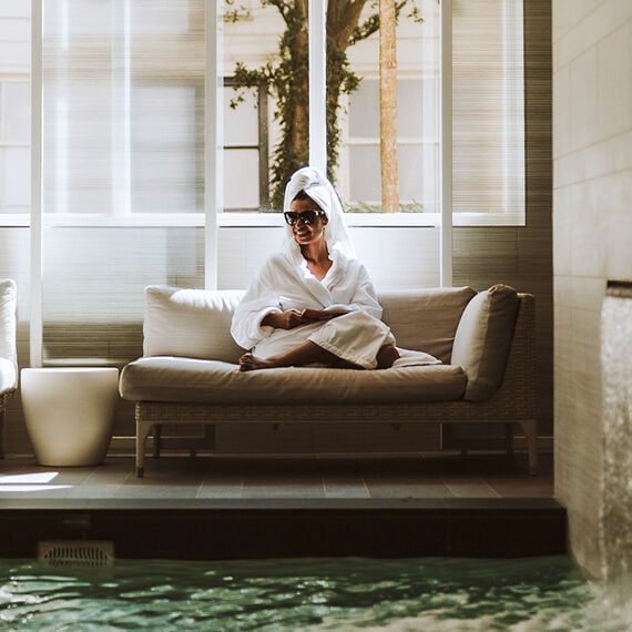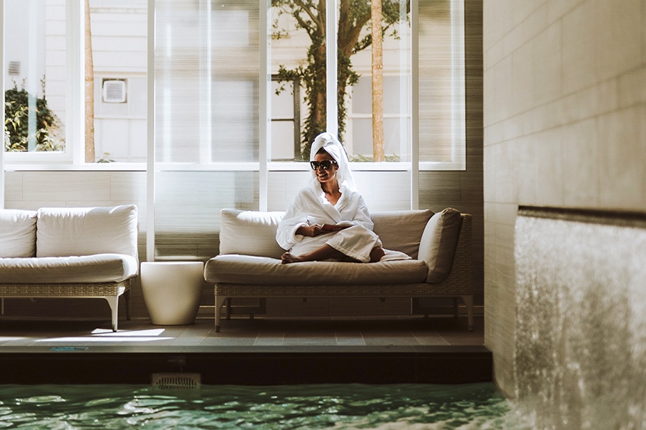 wonderfully soothing relaxation area, complete with a pool, sauna, steam room, and fitness