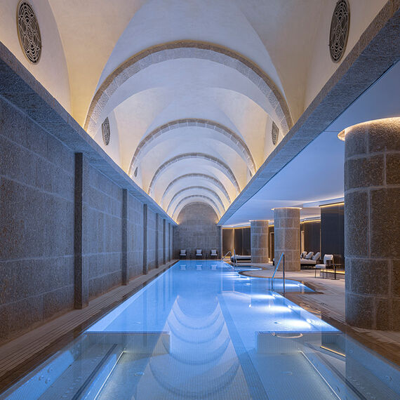 Turkish hammams and saunas and submerge in the heated indoor pool.